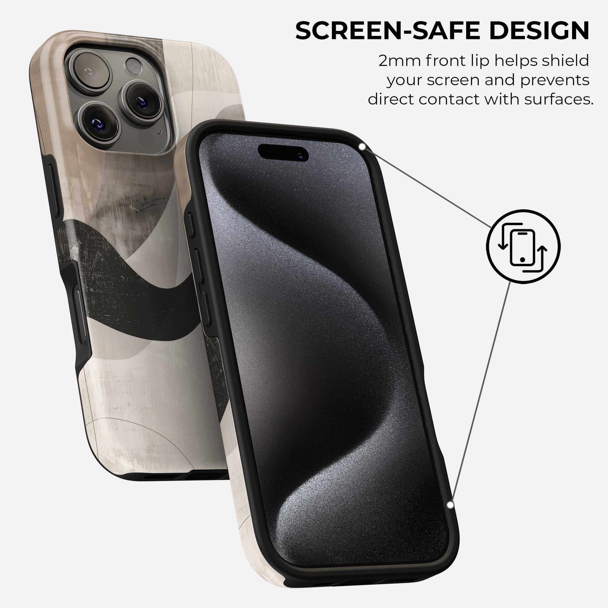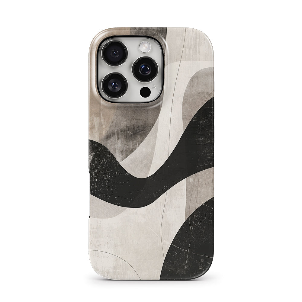 Elevate your style with this abstract black and beige wave phone case. Artistic, scratch-resistant, and compatible with iPhone, Galaxy, and Pixel.