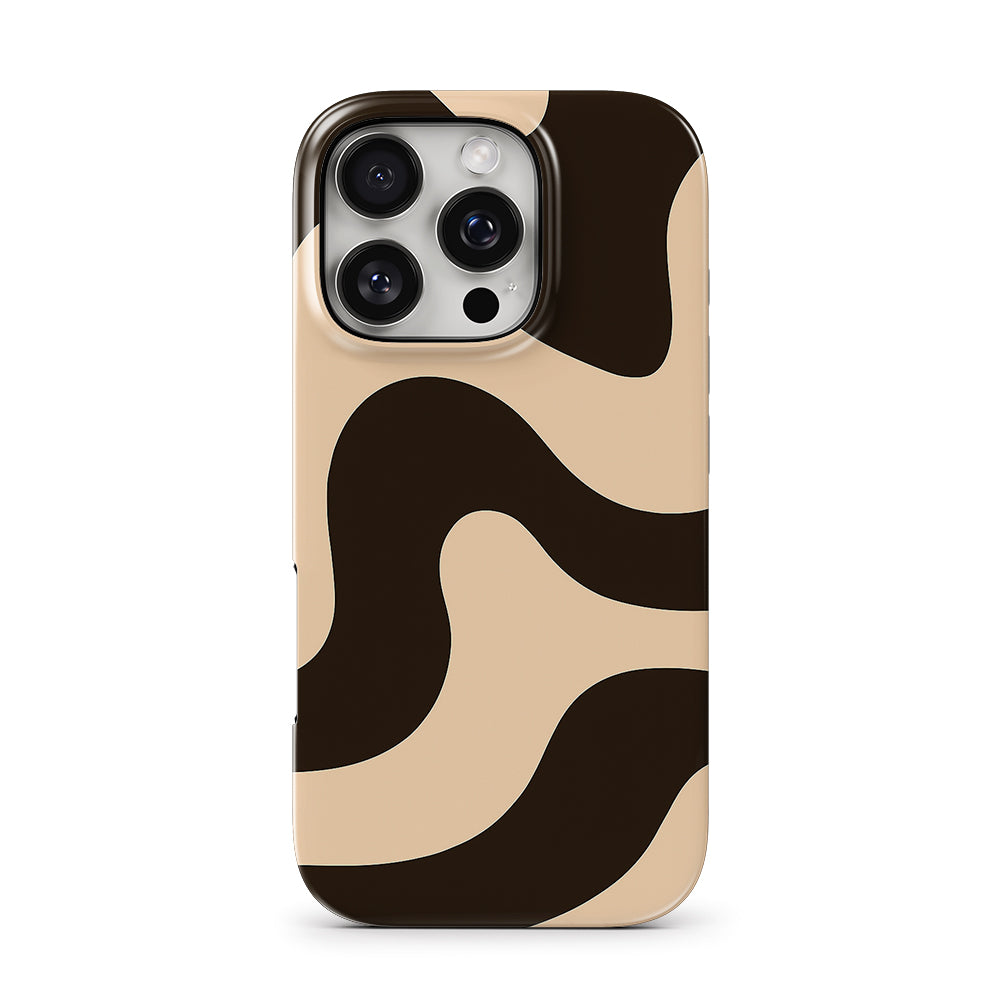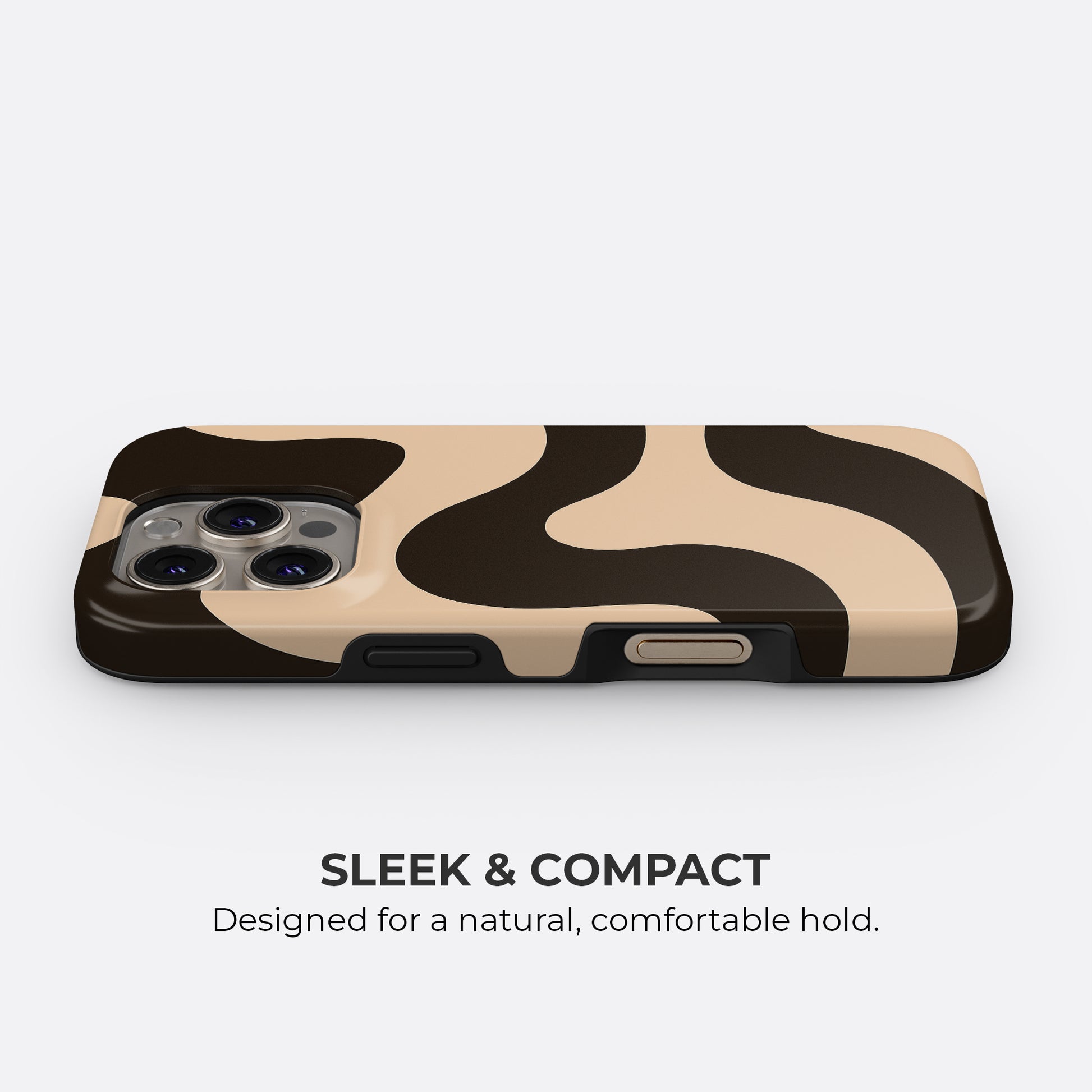 Stand out with this iPhone case featuring a bold black and beige abstract wave design. Sleek, durable, and perfect for modern style lovers.