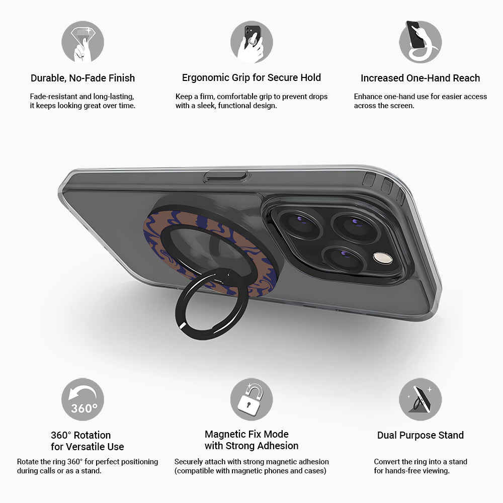 - Dual Purpose Stand: Convert the ring into a stand for hands-free viewing.