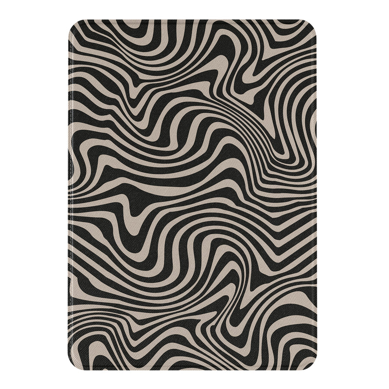 Edgy and hypnotic - swirling black and beige lines create a mesmerizing illusion. It feels urban, confident, and a little rebellious - like a modern twist on vintage glam.