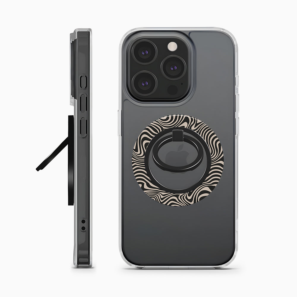 Edgy and hypnotic - swirling black and beige lines create a mesmerizing illusion. It feels urban, confident, and a little rebellious - like a modern twist on vintage glam.