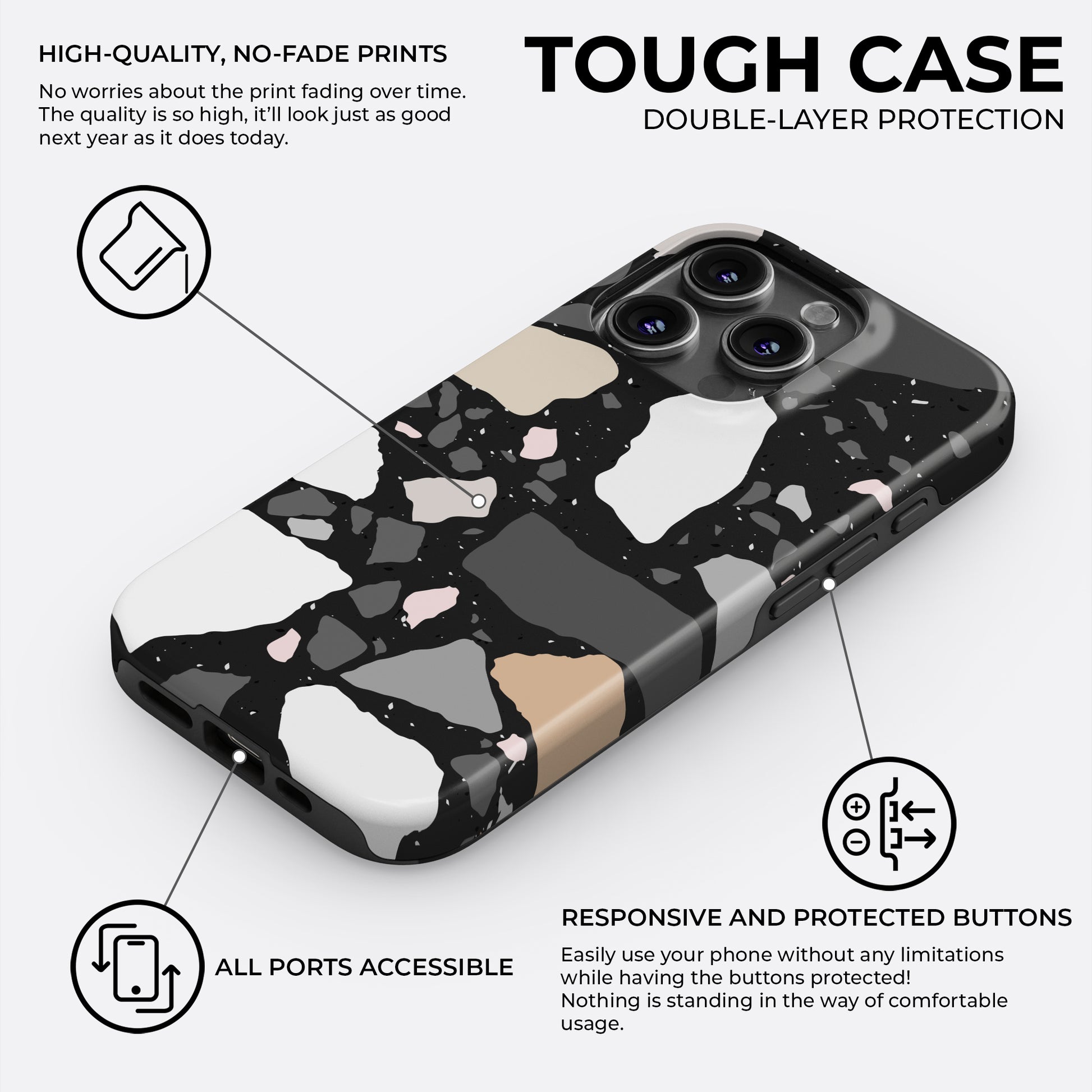 While no case is truly unbreakable, ours are crafted to handle everyday life with ease. Expect bold, lasting prints that won’t fade or peel over time. To demonstrate our commitment to quality, our cases come with a 12-month warranty.