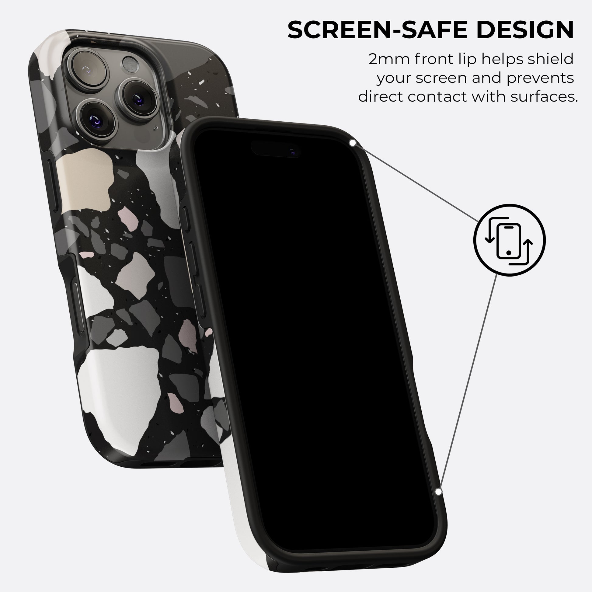 Our Tough cases offer maximum protection with a shock-absorbing inner layer and raised bezels to shield both the screen and camera from impact.