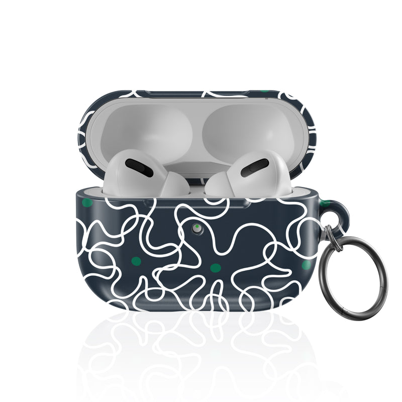 Drift into calm with Tanglepop. White lines twist and wander across a deep navy sky, dotted with quiet bursts of green - like thoughts meandering under moonlight. Minimal yet full of motion, this design captures the beauty of simplicity and flow. For days when your style feels effortlessly creative and quietly bold.