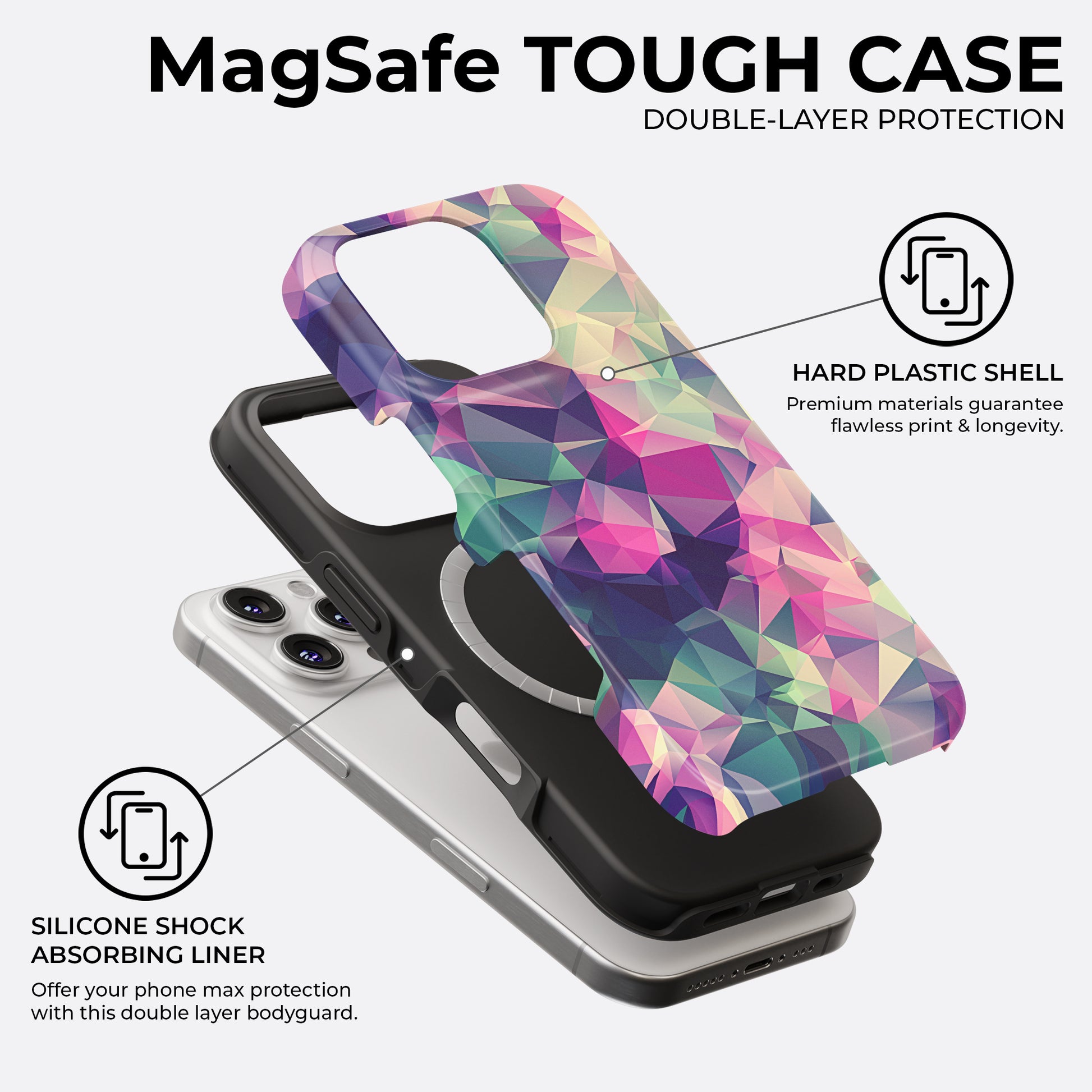 Add a pop of color to your iPhone with this vibrant geometric case. Featuring an abstract polygon design in bold hues of purple, teal, and pink, this case blends eye-catching style with functional protection.